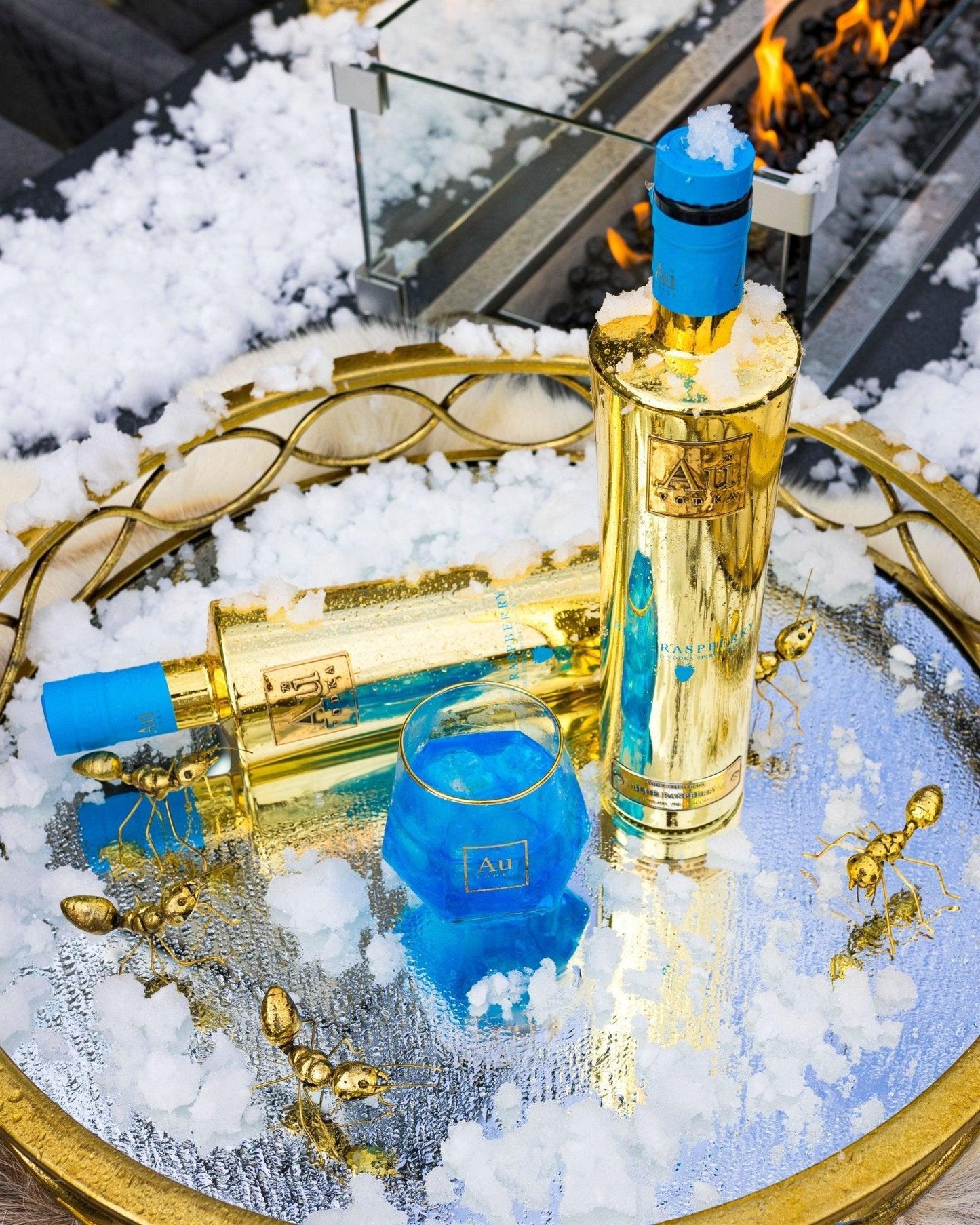 Gold symbolizing power and perfection represents the exceptional taste of Au Vodka Blue Raspberry.Au Vodka has combined its award-winning vodka with a unique fruit fusion creating a sweet and unique blue vodka.